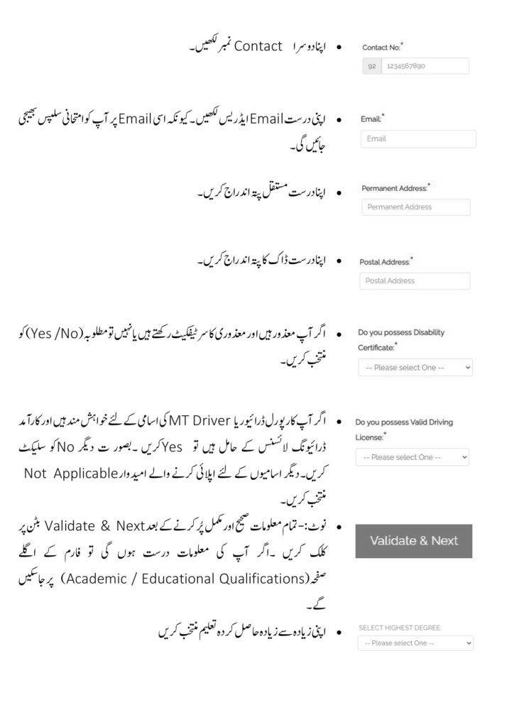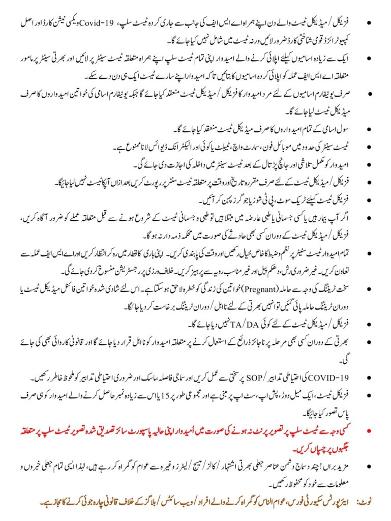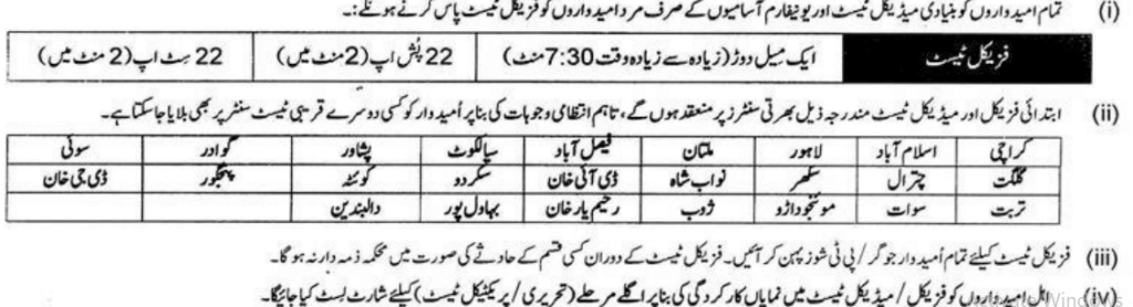 Instructions for physical and medical test (جسمانی اور طبی ٹیسٹ کے لیے ہدایات)