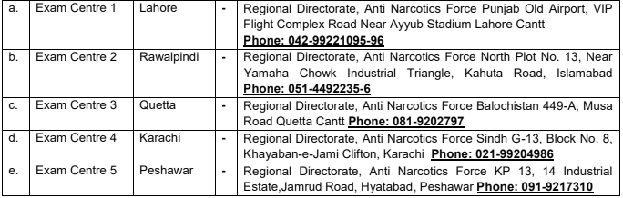 joinanf.pk within 15 days from the date of publication of the advertisement. - Following 5 x Exam Centres have been notified:-