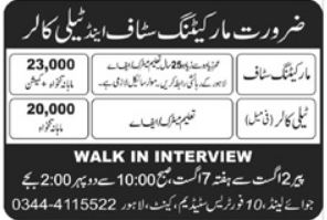 Experienced, field professional and target oriented candidates for the posts of Telecaller and Marketing Officer required for Joyland Pvt Ltd in Lahore.