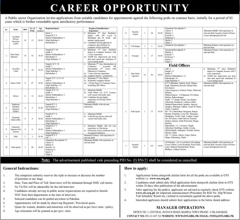 - Interested candidates meeting the required criteria should submit their application form on the prescribed form available at OTS official website www.ots.org.pk.