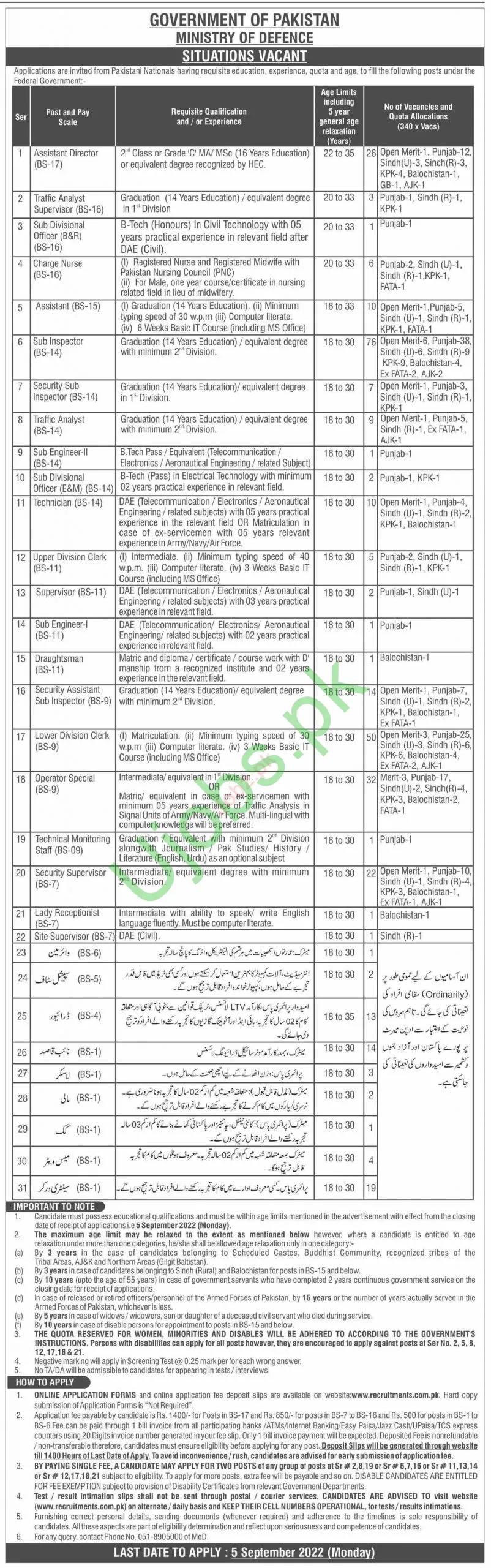 Ministry of Defence MOD Jobs Positions in Islamabad, Pakistan. Fresh and Experienced people are inspired to use. The newest Job is revealed on 24 Aug 2022 within the newspaper. The final date to use for this job is 05 Sep 2022. More Details concerning the Jobs within the Ministry of Defence MOD Jobs 2022 are talked about under within the given commercial.