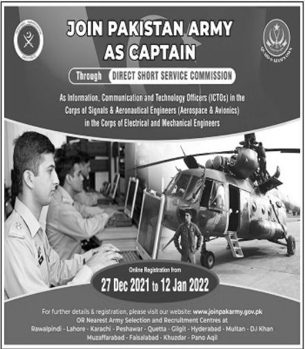 Captain Aeronautical Engineer in PAK Army by means of Direct Short Service Commission DSSC Jobs marketed on December 28, 2021, in Dawn Newspaper. Age shall be thought of on 1st May 2022. The final date to get this job alternative is 12 January 2022.